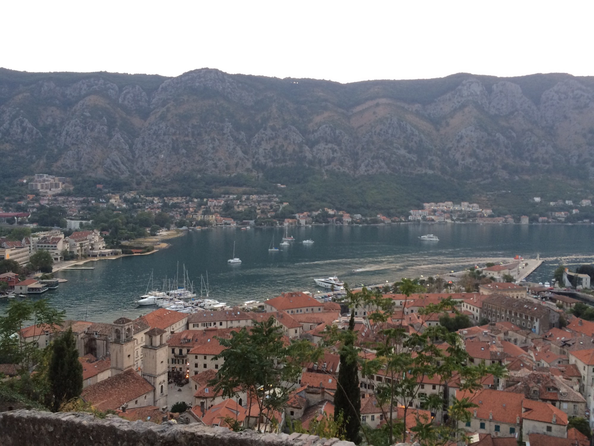 Çok geçmeden Kotor’a ulaşıyoruz. Kotor’da eski tarihi şehrin etrafı surlarla çevrili. Surlar şehrin ardında kalan dağın tepelerine kadar uzanıyor. Yüksek dağın eteklerine kurulan şehre gidiyoruz. Sokaklar çok dar ve labirent gibi. Biz şehre Batı deniz kapısından girdiğimiz için kuzeybatı yönüne doğru dağa çıkmak üzere ilerliyoruz. Bu sırada ikindinin son demleri ve güneş ağır ağır batmaya başlıyor. Kaleye giriş 3 €. Ücretini ödeyip başlıyoruz tırmanmaya.