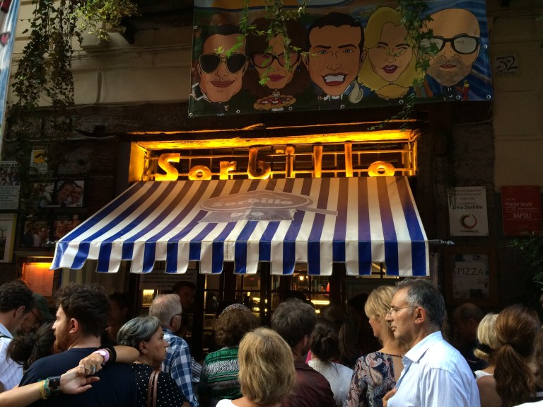 Malum pizzanın başkenti Napoli. Öyle olunca dünyanın en iyi pizzası Napolide yapılıyor diyorlar. Çok meşhur bi yer var Sorbillo diye akşam saat 19.00’da açılıyor, kapısında kuyruk oluyor falan diye söylüyorlar. E buraya da yakın olunca, gidiyorum hemen. 15 dakka var 19.00’a kapıda çok olmasa da sıra var.