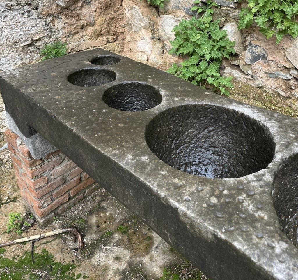 Şehrin içerisinde bulunan en ilgi çekici noktalardan biri, antik ölçüm yönteminin kullanıldığı taş kaidedir. Kaide üzerinde çeşitli genişliklerde açılan boşluklar sayesinde arpa, buğday, mısır gibi ürünleri rahatlıkla ölçtükleri anlaşılıyor. Geçmişe doğru hayali bir yolculuğa çıkıp bu taş tezgah önünde, bu antik ölçüm yöntemi ile evinize ekmek pişirmek için buğday aldığınızı düşündüğünüzde yaptığınız ziyaret çok daha anlamlı hale geliyor.